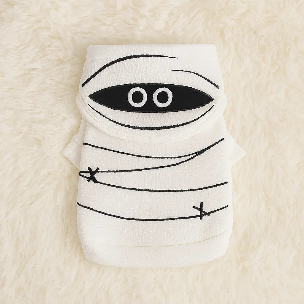 Dieser süße Halloween-Katzenpullover im Mumien-Design vereint Wärme, Komfort und festlichen Stil.